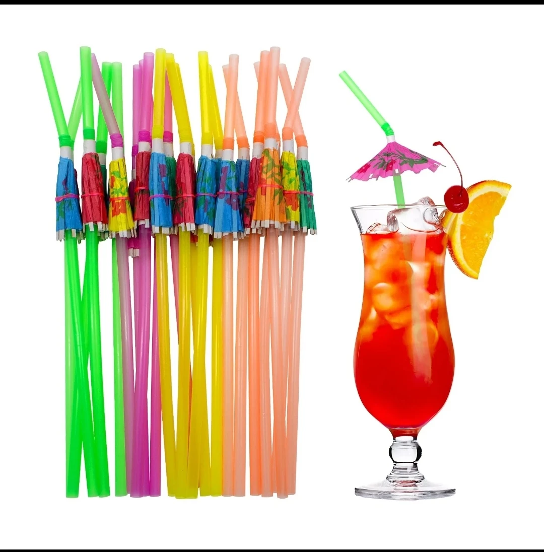 50 pajitas de paraguas de plástico Flexible pajitas de cóctel palos para playa hawaiana cóctel Luau decoración de fiesta